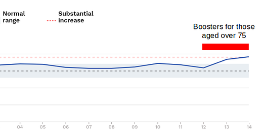 I note that we managed to get through the Omicron wave in the UK with normal levels of excess deaths in those aged 75-85, but as soon as the booster doses were rolled out we rapidly hit the threshold for a ‘substantial increase’.